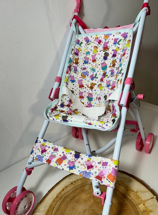 Carro de muñecas con estampado de pepa Pig con bolsito de carro y personalizado con el nombre